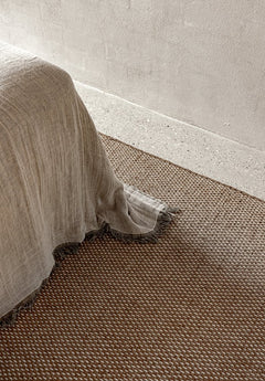 Grounded in texture and rich chocolate hues, the Bark Walnut rug exudes understated luxury. The wool and cotton construction provides durability, warmth and softness underfoot, making it a timeless foundation that complements minimal / modern settings.