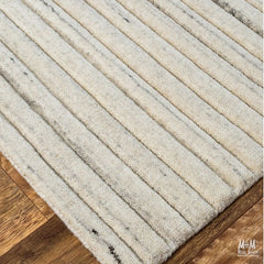 Celebrity grooved pattern and tonal texture add understated luxury to the contemporary design. Expertly hand loom-knotted in New Zealand wool, the pile is artfully cut to a high-low finish that adds rich variation and subtle highlights. These hand-loomed rugs are made of wool, painstakingly stripped by hand. The slow process creates a unique pattern on the rug that is both delicate and elegant.
