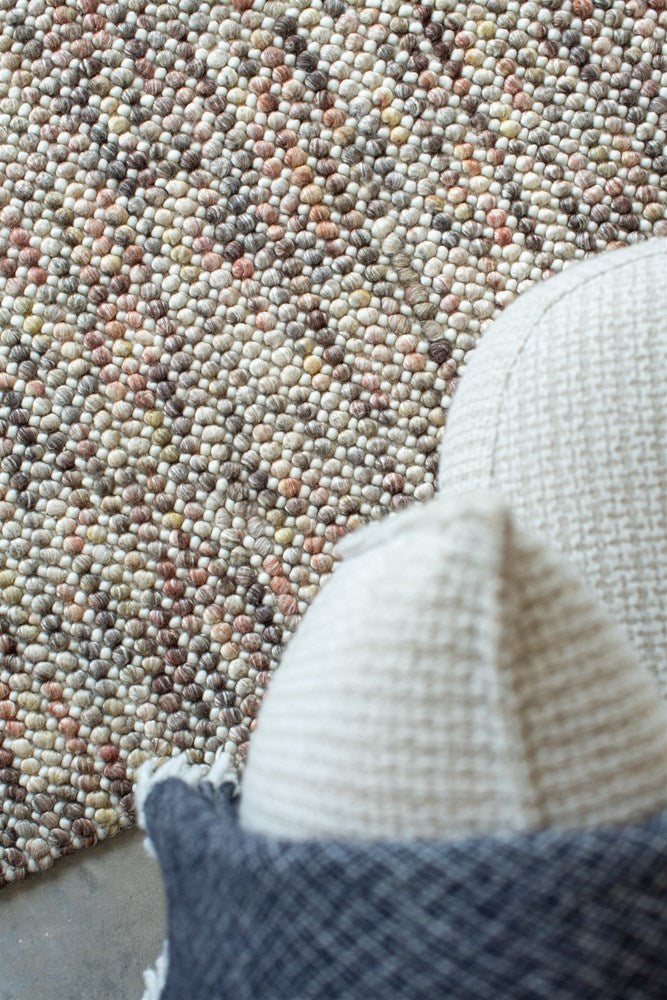CONSTRUCTION: Handwoven, hard-wearing wool blend construction with a bouclé loop pile