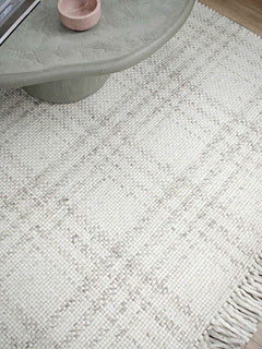 A contemporary handwoven rug collection with fringe, handmade by artisans in 100% pure wool.
