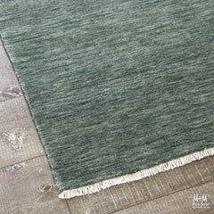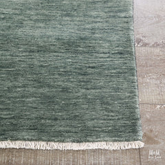 Handloom knotted wool rug, with fringe.
