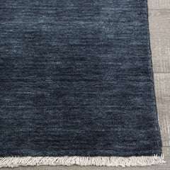 Handloom knotted wool rug, with fringe.
