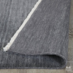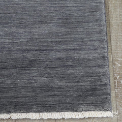 Handloom knotted wool rug, with fringe.