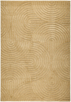 Modern and geometric, Zina Gold features bold circular arcs over a soft golden background. Its a striking piece that adds movement and warmth to any space. The golden tones bring a sense of light and refinement, making it a perfect statement piece.